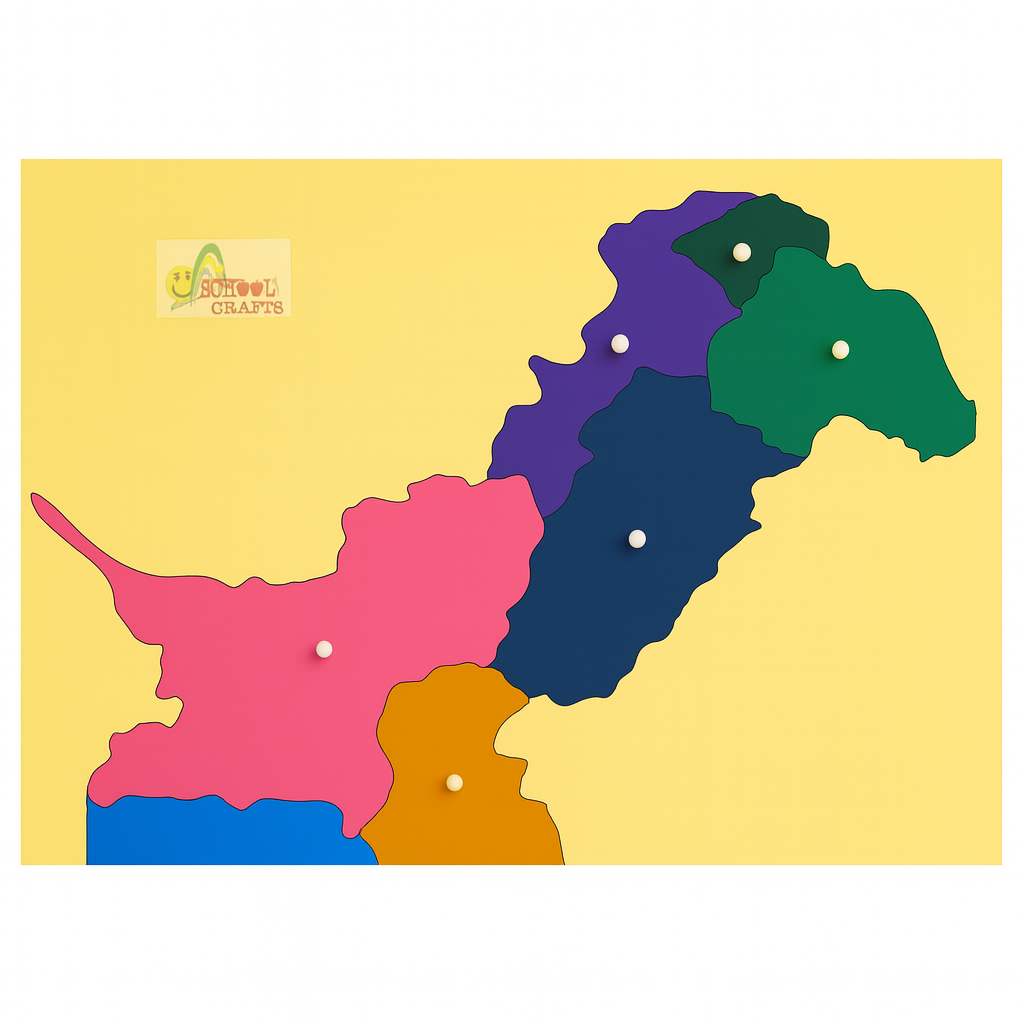 A wooden board map with plastic knobs. Board Maps are small version of Montessori Puzzle Maps. They are excellent alternatives to full-size maps.