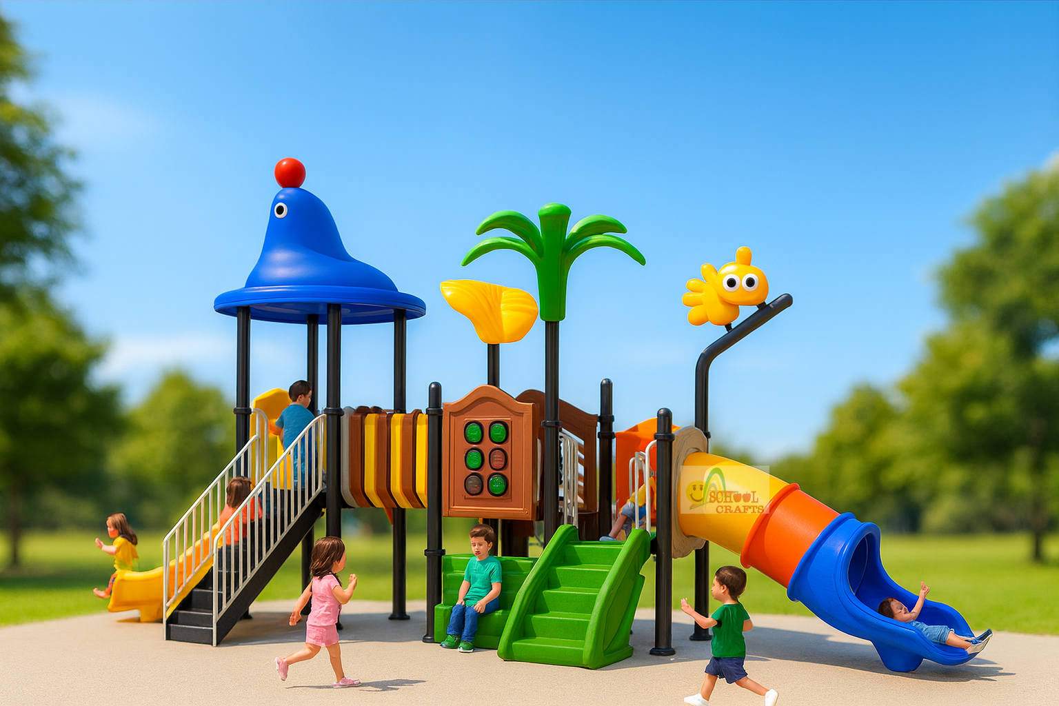 Outdoor Playground Equipment is a type of playset with plastic slides, tunnels, climbers, swings, etc. The outdoor playgrounds would help promote the all-around development of children by improving motor skills, coordination, creativity and problem solving skills. Also enhance children’s self-protection awareness.